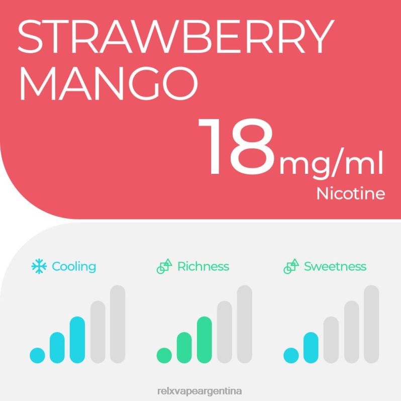 mango fresa: ¡una fusión frutal que te hará sonreír! Disfruta de los sabores dulces y jugosos de la fresa y el mango en esta vaina. es como unas vacaciones tropicales en la boca, donde las frutas están maduras y listas para ser disfrutadas. ¡disfruta de una experiencia de vapeo divertida y creativa con cada calada y deja que los sabores de esta fusión frutal te lleven a una deliciosa aventura!